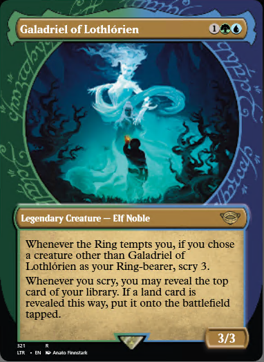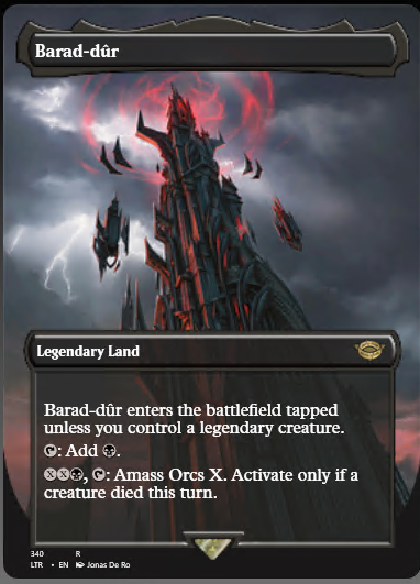 Middle-earth Map Lands (regular) Naz-gûl (regular, all 9 arts) Showcase Ring (regular & foil) Borderless Scene Cards (regular & foil) Borderless Lands (regular & foil) |