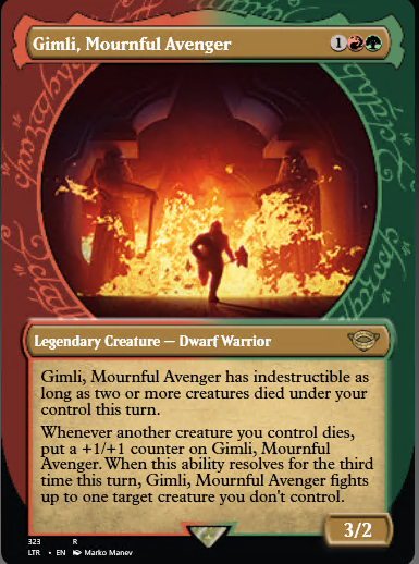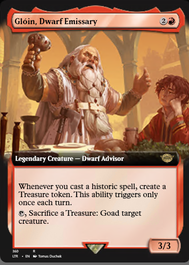 Dwarfs ($12.99 USD) – Sol Ring; Gimli, Mournful Avenger; Glóin, Dwarf Emissary (extended-art)