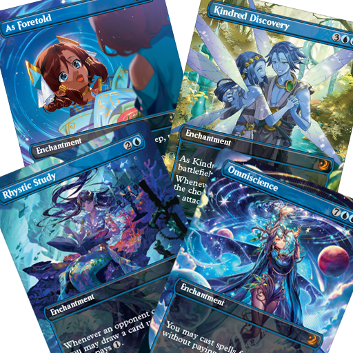- Blue Bundle – As Foretold, Kindred Discovery, Omniscience, and Rhystic Study